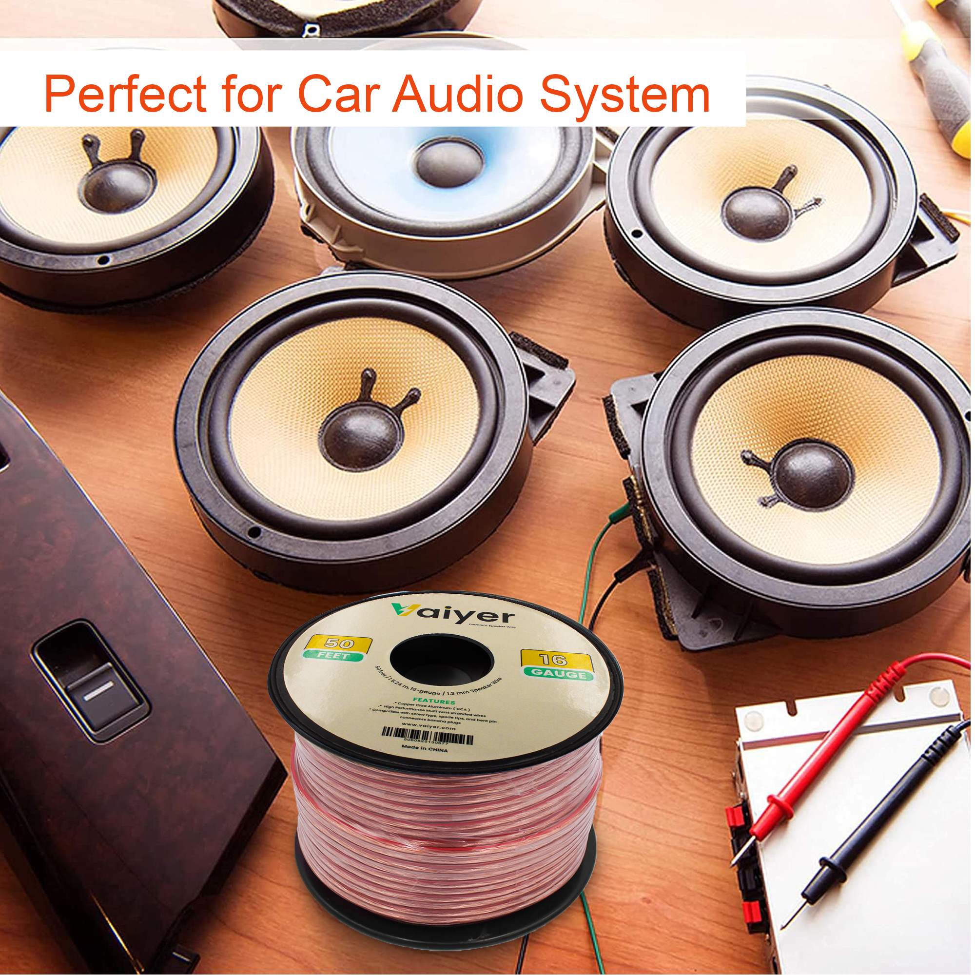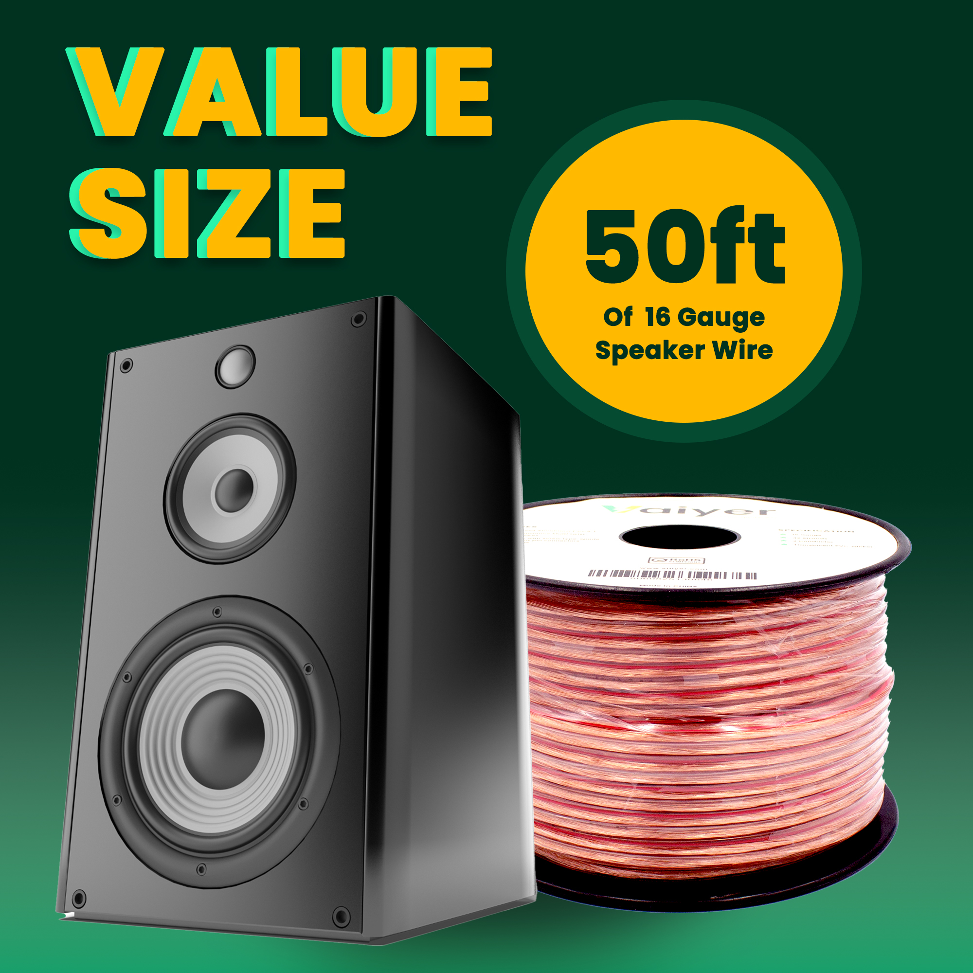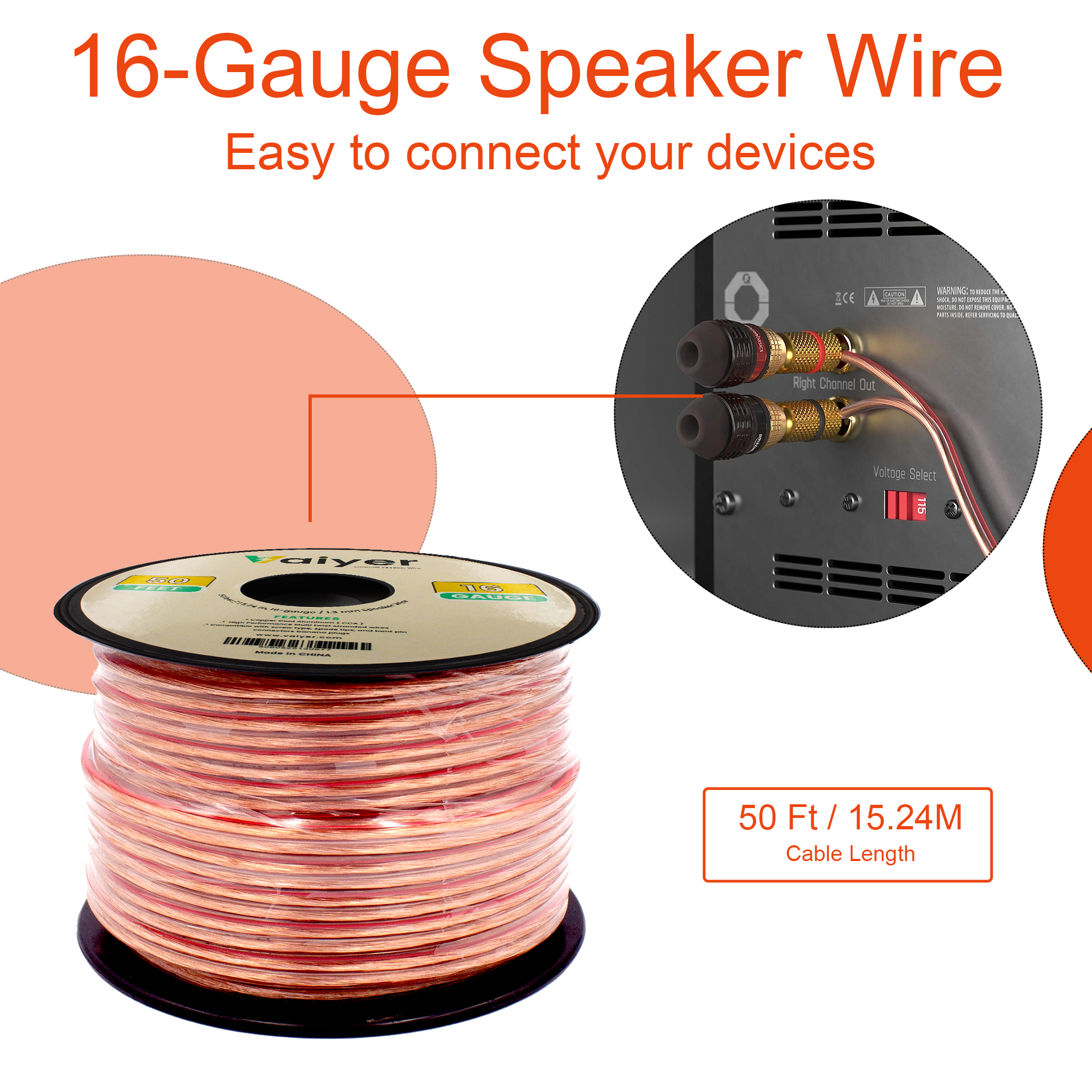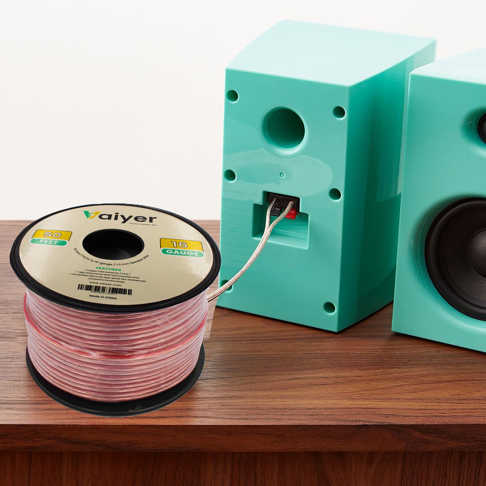 16 Gauge Speaker Wire Cable - 50 ft 15.24 Meter 1.3 mm CCA High-Performance Stereo Speaker Cable for Car Speakers, Home Theater Speakers, Surround Sound, Radio by Vaiyer