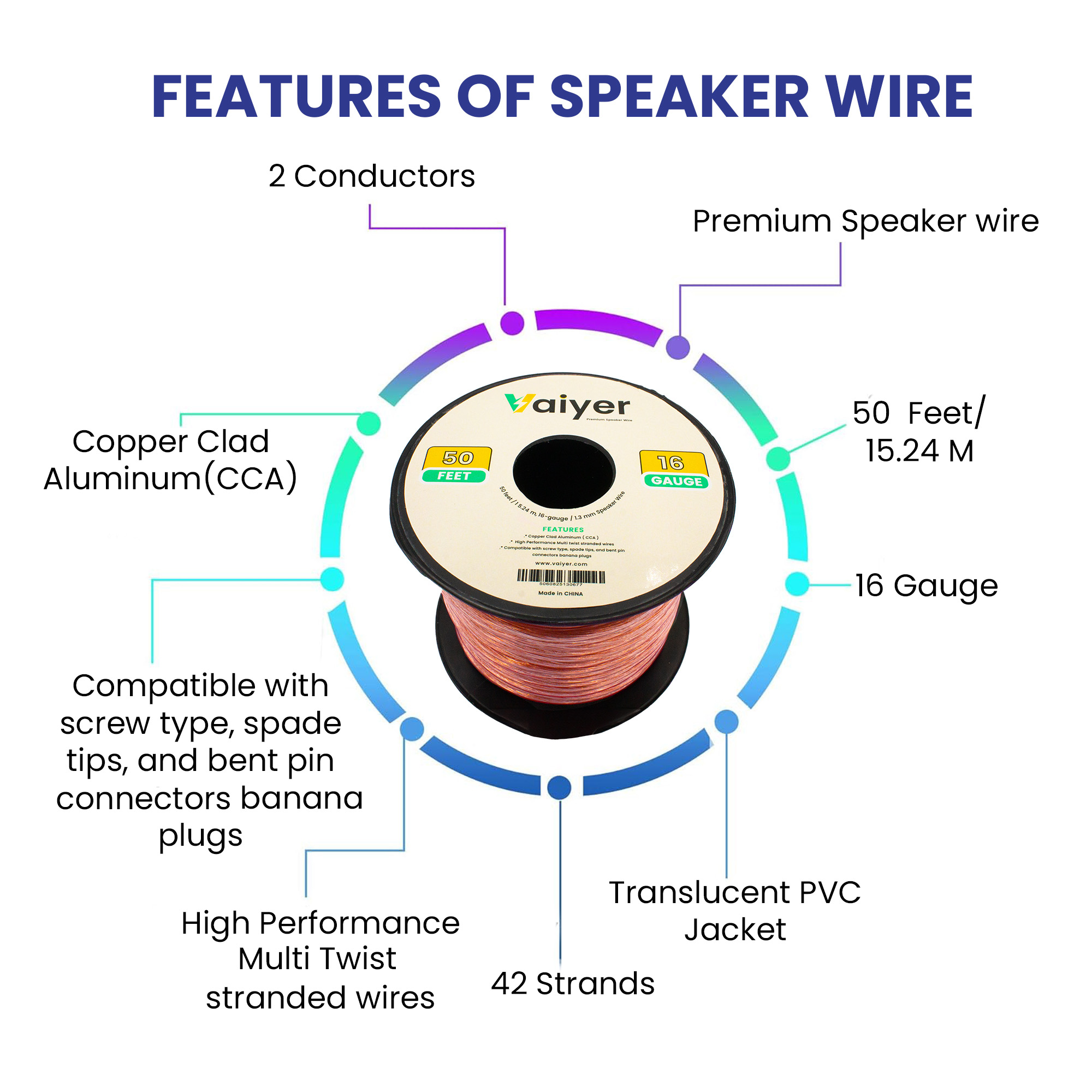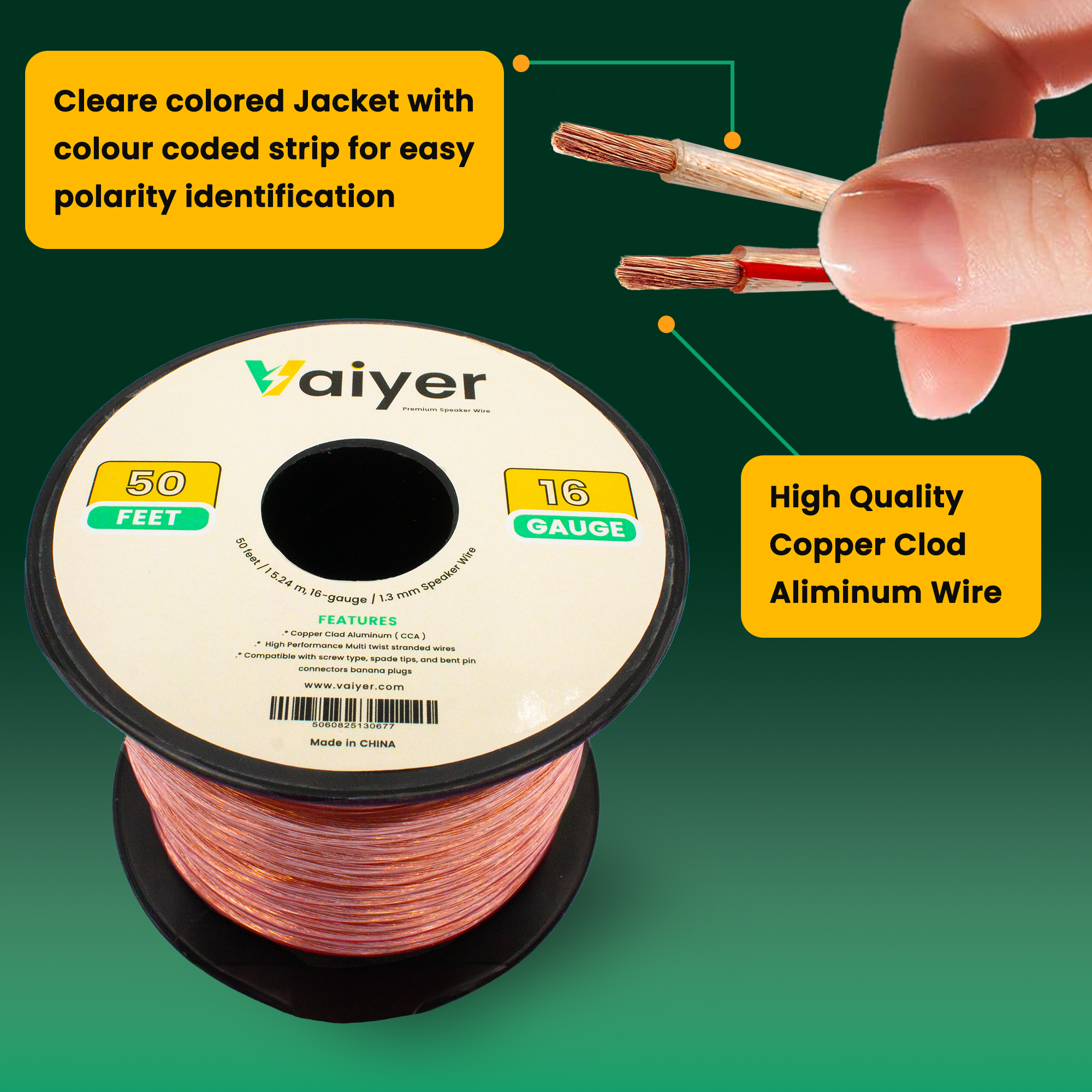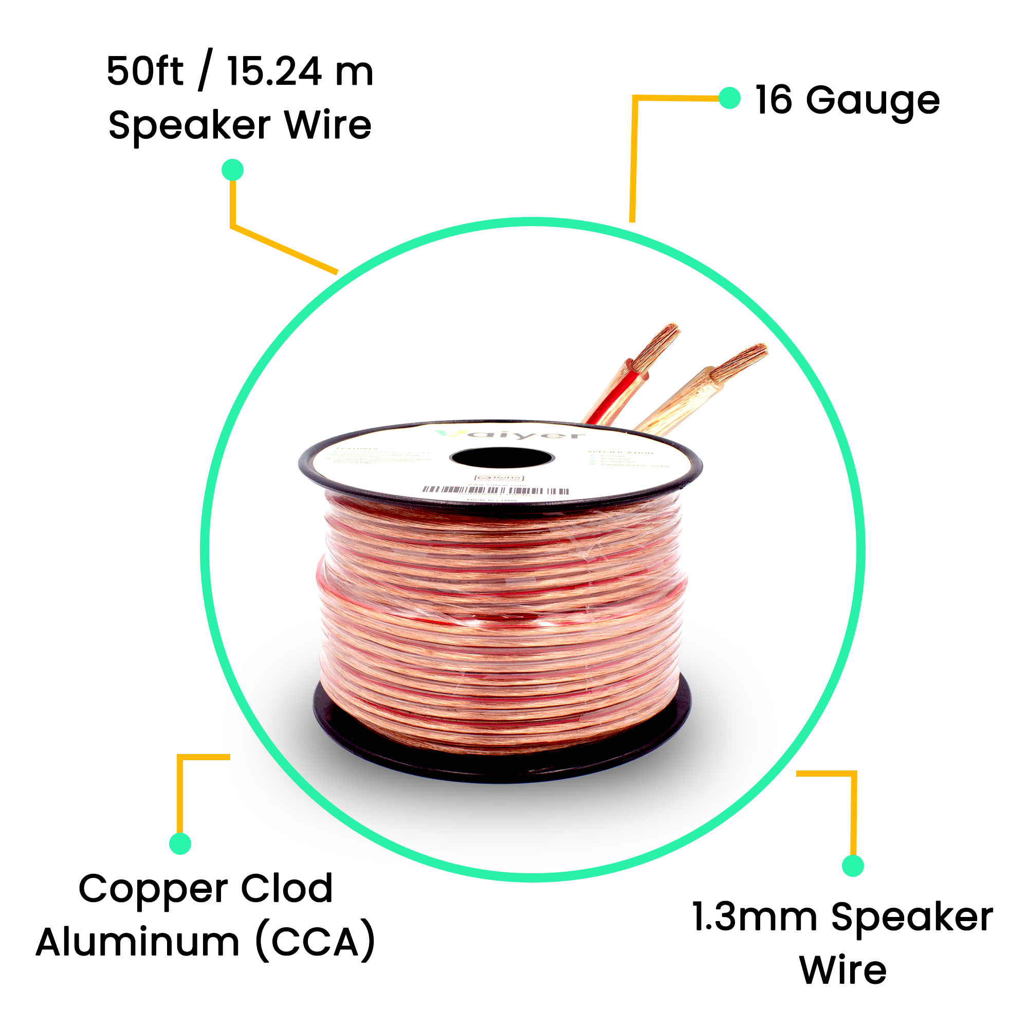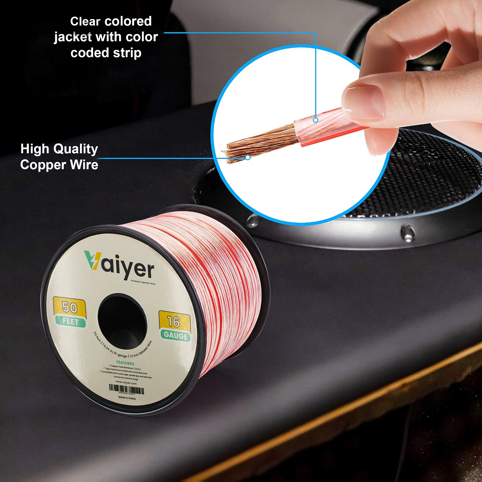 16 Gauge Speaker Wire Cable - 50 ft 15.24 Meter 1.3 mm CCA High-Performance Stereo Speaker Cable for Car Speakers, Home Theater Speakers, Surround Sound, Radio by Vaiyer