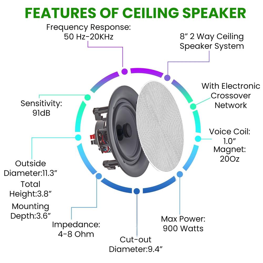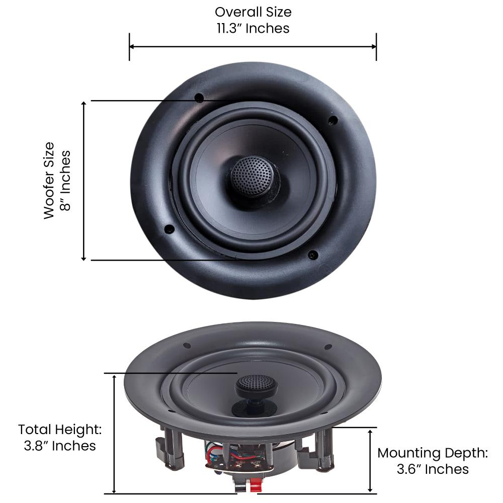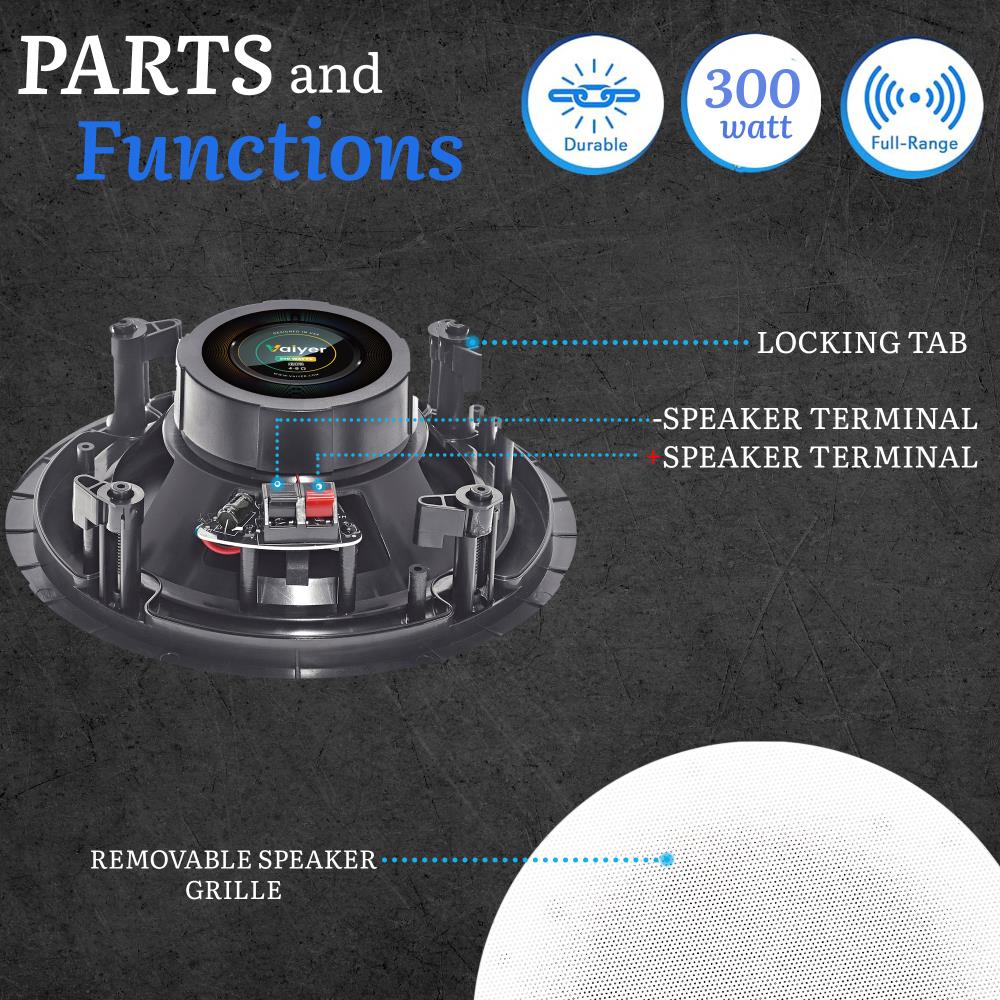 Vaiyer Pair of 8 Inch 8 Ohm 300 Watts (Total 600 Watts) Frameless Speakers, Flush Mount in-Wall in-Ceiling 2-Way Mid Bass Woofer Speakers with 60Hz–20kHz Frequency Perfect for Home, Office, Kitchen, Living Room