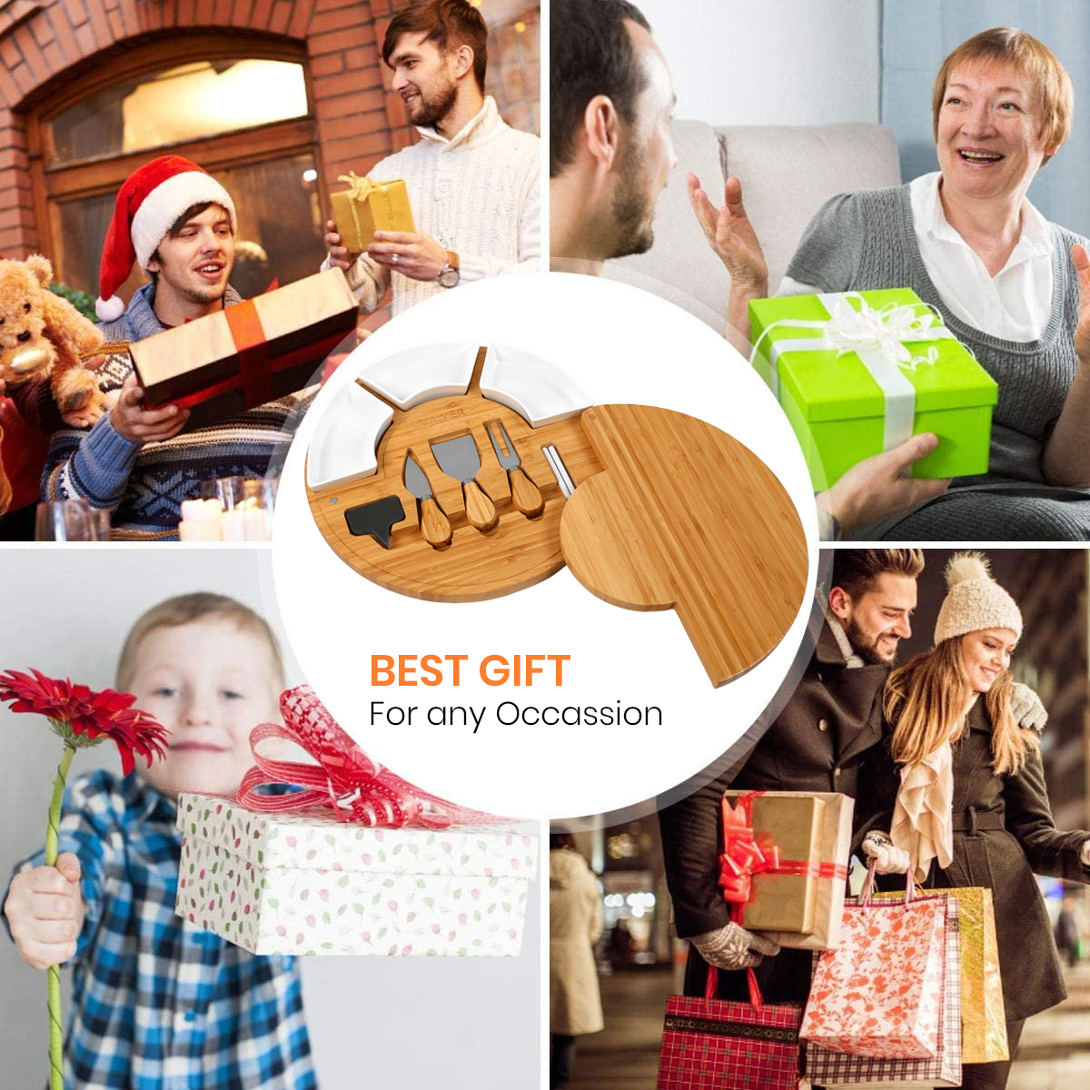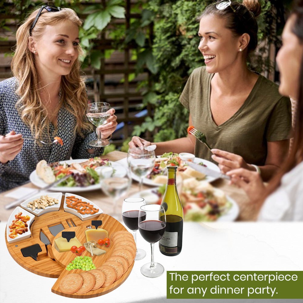 • For All Occasions: This cheese board is perfect to use for any occasion. Whether for a family holiday, get together or a night in with friends, this 13” cheese platter with individual compartments & removable bowls will be the main attraction. Perfect size to arrange cheeses, snacks, dips and more!
